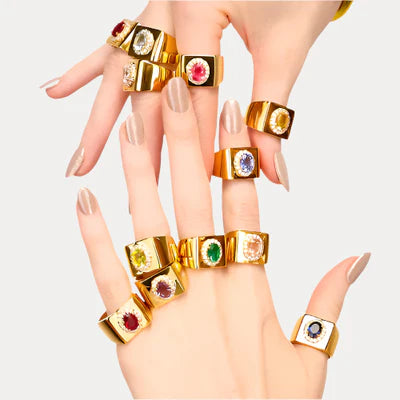 Inspired by the joy and celebration of birthdays, BuDhaGirl's Birthday Ring serves as a reminder to cherish every moment and to celebrate the beauty of life. Whether you wear it on your special day or as a daily reminder of life's joys, this timeless piece exudes elegance and sophistication, adding a touch of glamour to any outfit.