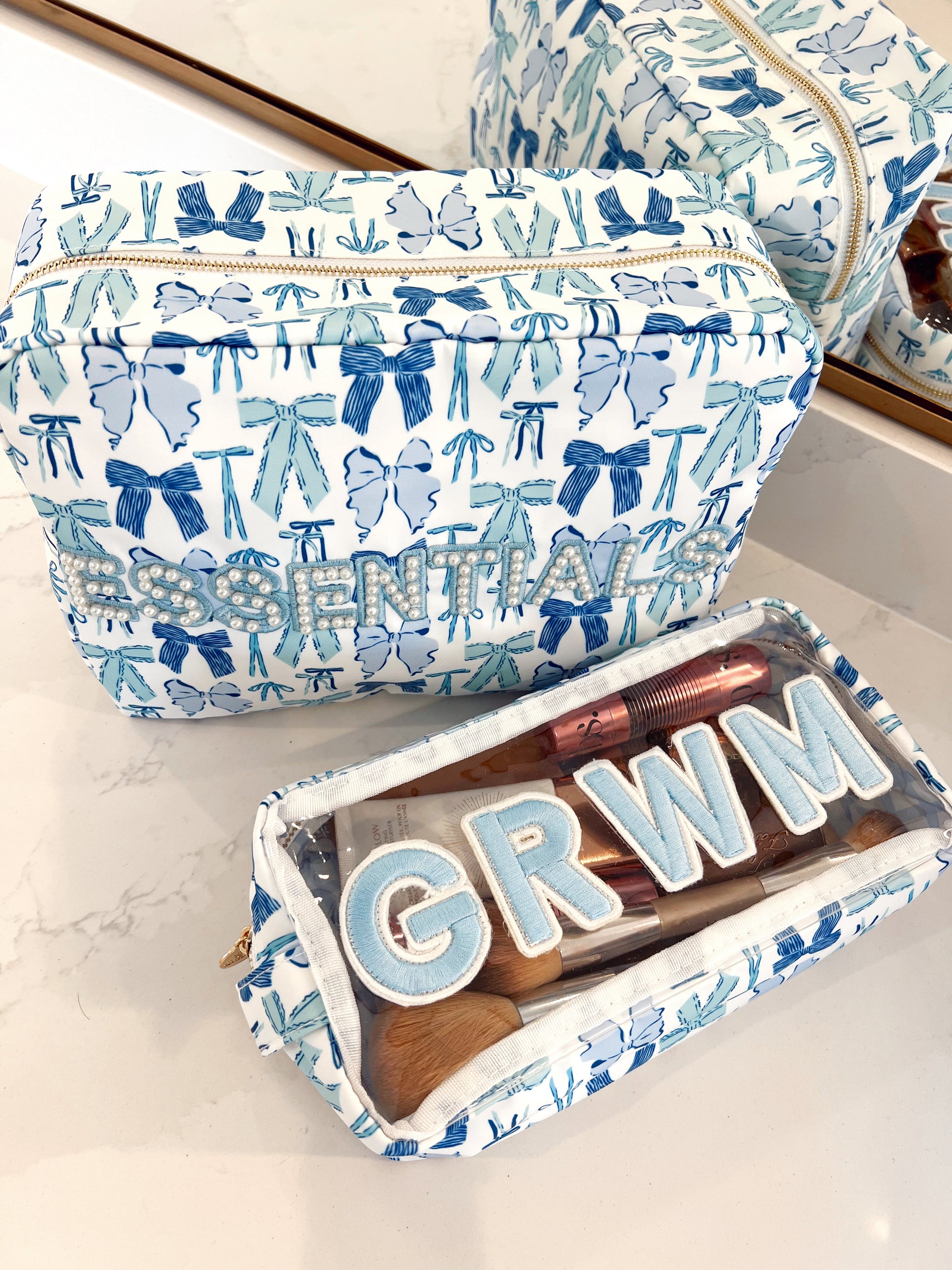 - Shop our first ever blue bow nylon print Essentials XL!