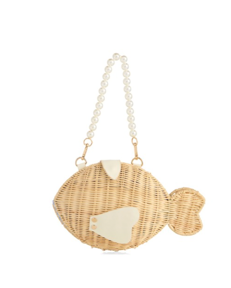 **end of january(ish) **This elegant handbag is the perfect accessory for any occasion. The dimensions of 11" x 3.5" x 7" provide ample space for all your essentials, while the single, detachable handle allows for versatile styling options. The intricate design features a combination of rattan and faux pearls, adding a touch of sophistication to your look. The magnetic snap closure ensures your belongings are secure while on the go. With a handle height of 7.75", this handbag is both practical and stylish, making it a must-have addition to your collection.