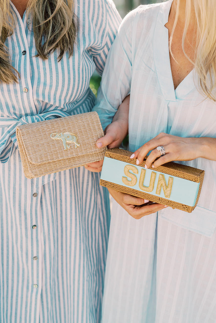 The Ruby straw foldover clutch with optional crossbody strap is reminiscent of Charleston charm and resort relaxation. Customize & shop at Lisi Lerch today.